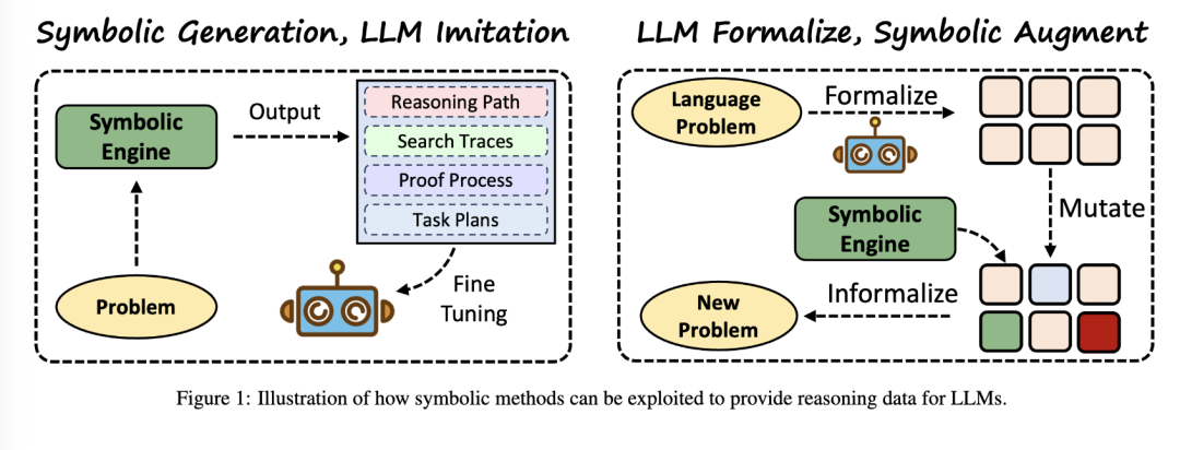 对于能够通过符号方法求解的问题,我们可以利用这些方法生成逻辑严谨的推理路径。在此类数据集上对 LLM 进行微调,可使其学习并潜在地模仿符号方法的推理能力。这一思路与知识蒸馏(knowledge distillation)颇为相似,但不同之处在于:它并非从一个更强的模型中蒸馏数据,而是从符号方法中“蒸馏”推理轨迹。