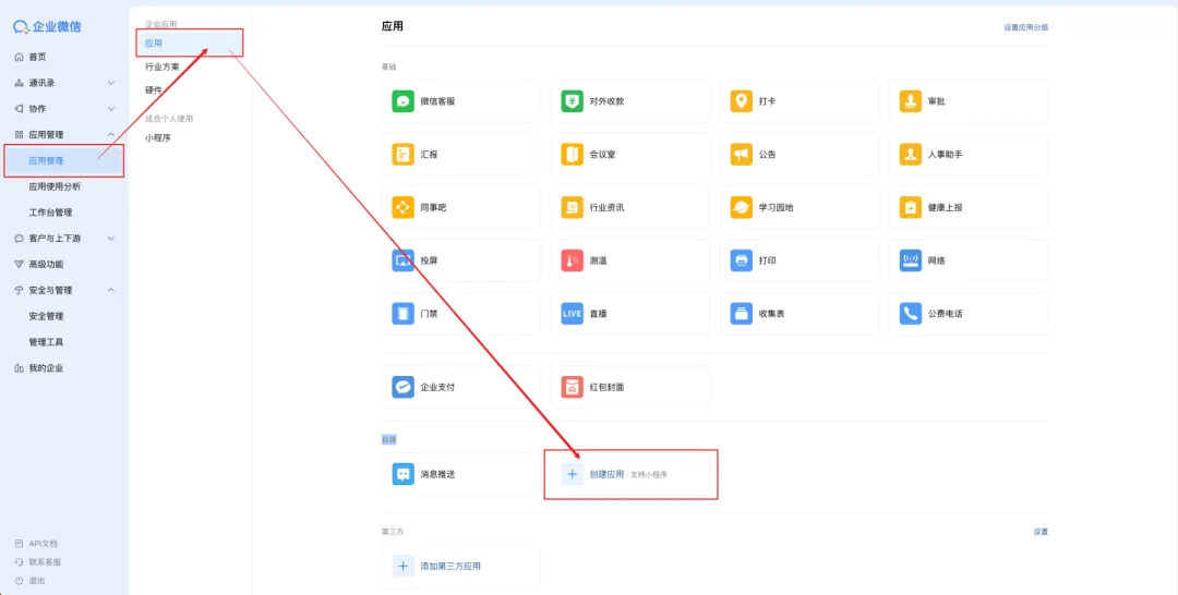 创建企业微信应用: