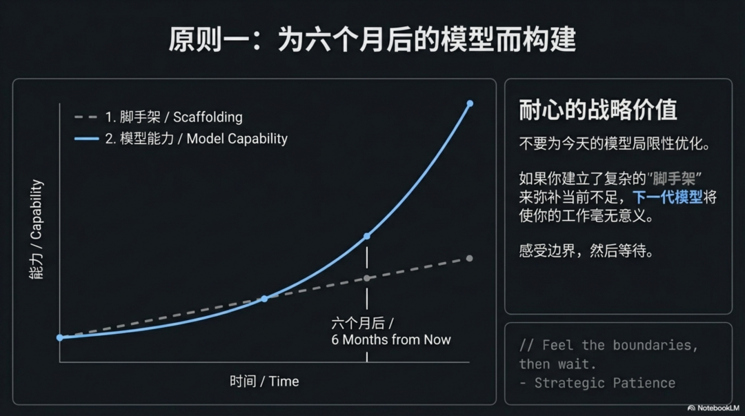 “在 Anthropic,我们的信条是:不要为今天的模型构建,要为六个月后的模型构建。去思考模型今天还不擅长的边界,因为六个月后,模型必然会征服它。”
