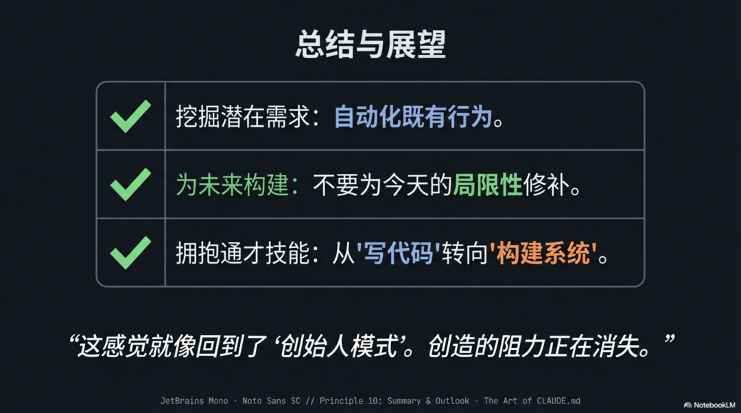 最后的一个行动建议: 停止对模型的“保姆式”照看。删除你那些为了兼容旧模型而写的冗长、过时的指令和 Prompt。信任下一代模型(如 Opus 4.6+)的通用推理能力,把你的大脑从“如何写(How)”中解放出来,投入到“写什么(What)”以及“为何写(Why)”的终极命题中去。