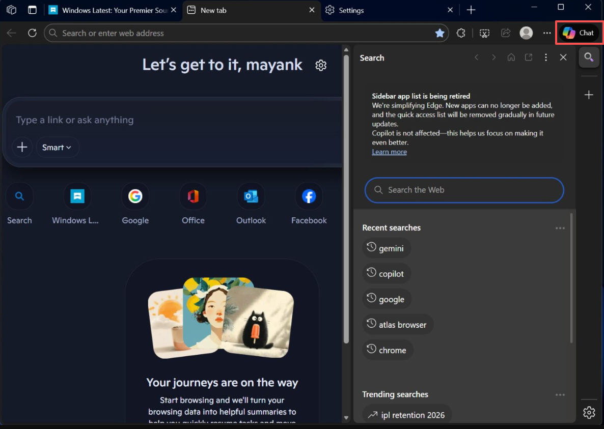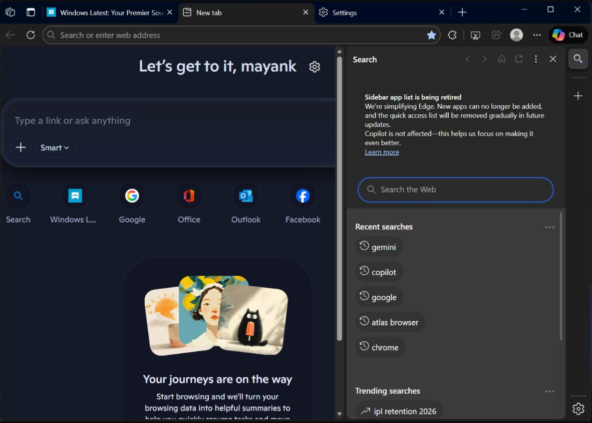 然而时间来到2026年,曾经备受喜爱的Edge,早已不是当初的模样。大家印象中,浏览器新标签页本该是地址栏+常用网站快捷方式+精美壁纸的组合,如今却被完整的Copilot体验彻底取代,AI的存在感被拉满。