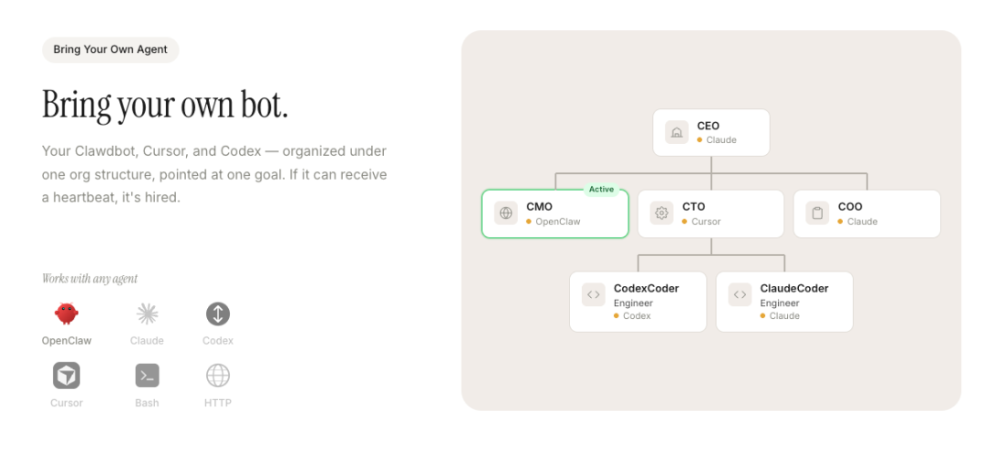 Paperclip 最大的特点就是"Bring Your Own Agent"。