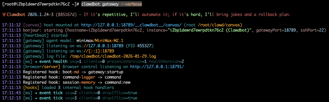对了,大家如果想将 Clawdbot 服务运行在后台,可以执行下面命令: