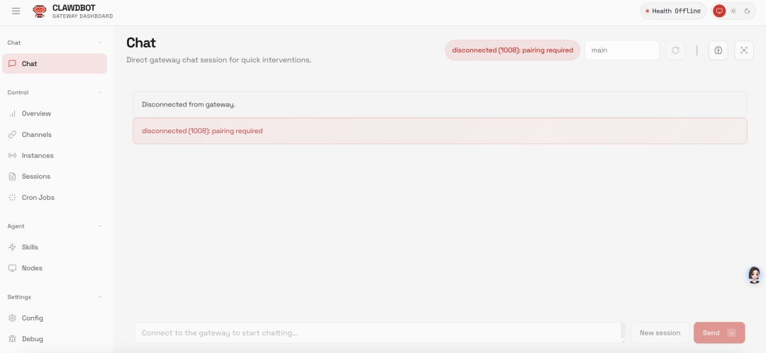 然后访问该地址,就能够成功的打开 ClawdBot 的网页了。