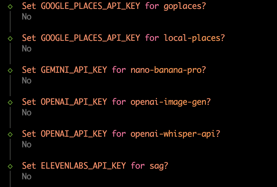接着会问你一堆 API 的设置(比如Gemini、Nano Banana Pro等),我这里是没有,直接选No。