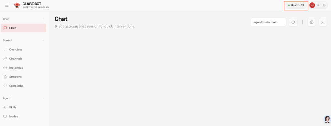 最后回到 Clawdbot 控制台,就能看到状态正常了。