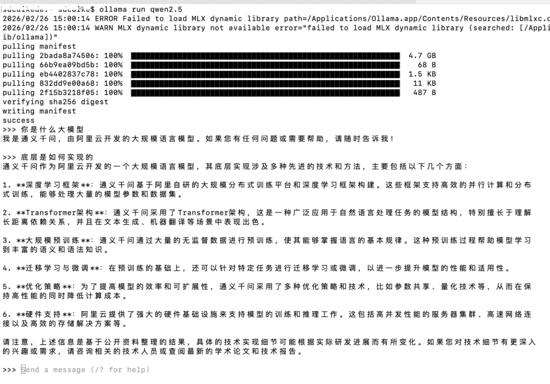 注:输入命令后,如果本地没有该模型,它会自动下载。