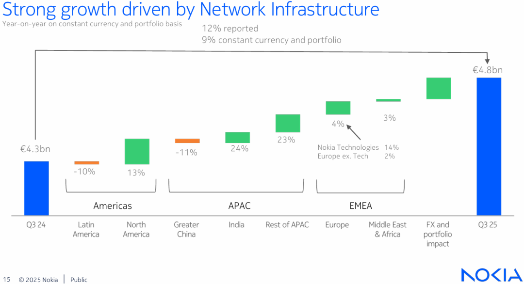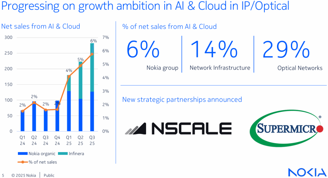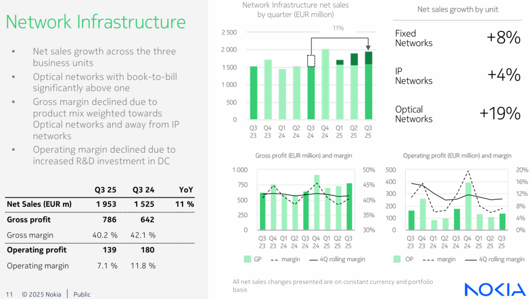 2025年第三季度,诺基亚交出了一个让人惊艳的成绩单,净销售额同比增长了12%,其中光网络业务更是实现了19%的增幅。