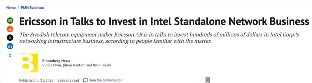 (网传2025年8月1日爱立信和intel谈判收购NEX部门)