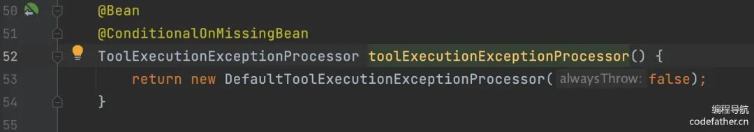 看源码发现,Spring Boot Starter 自动注入的 DefaultToolExecutionExceptionProcessor 默认使用第一种策略: