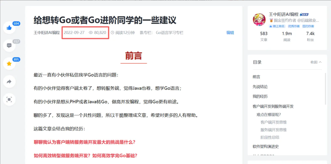 三年前,我写过一篇《给想转Go或者Go进阶同学的一些建议》,有幸在掘金获得了近8万阅读,帮助了许多正在转型和迷茫中的开发者。