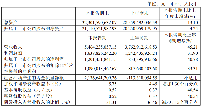 8月5日晚间,国产处理器厂商海光信息发布2025年半年度报财报。上半年实现营业收入54.64亿元,同比大涨45.21%;归母净利润为12.01亿元,同比大涨40.78%;扣非净利润为10.9亿元,同比增长33.31%。基本每股收益0.52元,同比大涨40.54%。