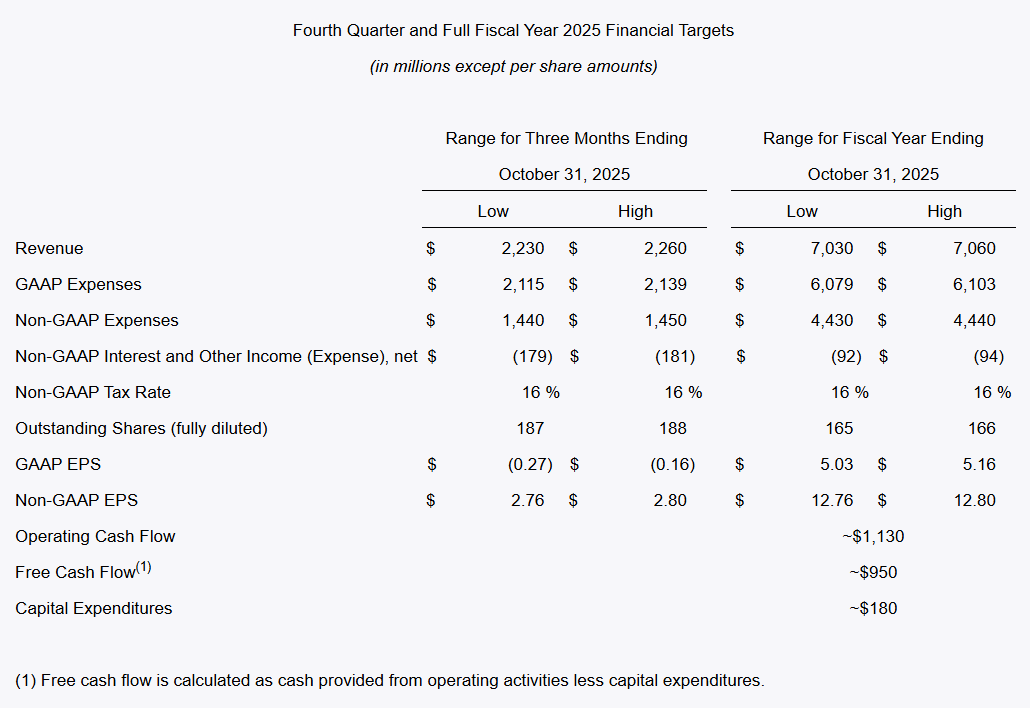 财报显示,新思科技2025财年第三财季收入为 17.40 亿美元,同比增长 14%,低于分析师预期的17.7亿美元;依照美国公认会计原则(GAAP)基础上,净利润为 2.425 亿美元,同比大跌43.06%,摊薄后每股收益为 1.50 美元,同比下滑44.57%;非依照美国公认会计原则(Non-GAAP) 基础上,2025 财年第三季度的净利润为 5.489 亿美元,同比增长2.5%,摊薄后每股收益为 3.39 美元,同比下滑1.17%,低于分析师预期的3.80美元。