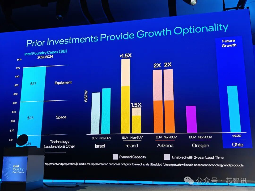 2024年这四年间,英特尔在全球的资本支出达到了900亿美元,其中约180亿美元投向了技术研发,370亿美元都投向了晶圆厂设备支出。