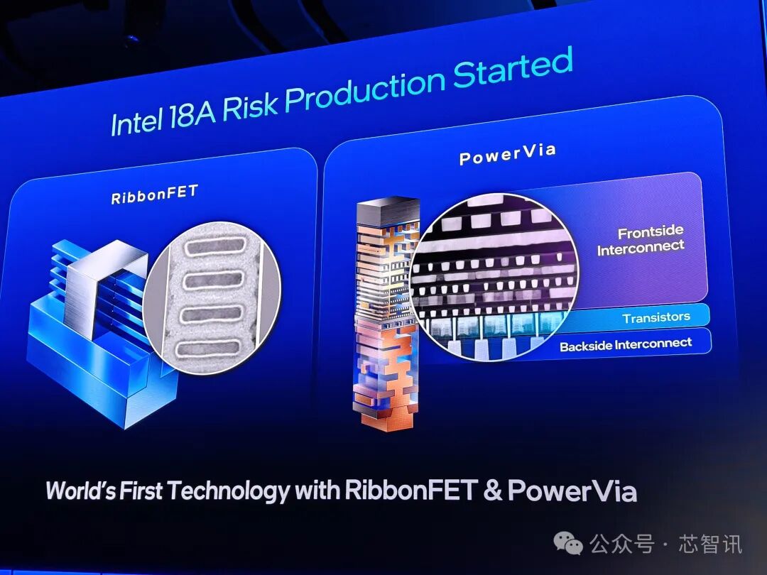 资料显示,Intel 18A采用了RibbonFET 环绕栅极晶体管(GAA) 技术,可实现电流的精确控制,同时还率先采用了业界首创的 PowerVia 背面供电技术,可将密度和单元利用率提高 5% 至 10%,并降低电阻供电下降,从而使 ISO 功率性能提高高达 4%,并且与正面功率设计相比,固有电阻 (IR) 下降大大降低。
