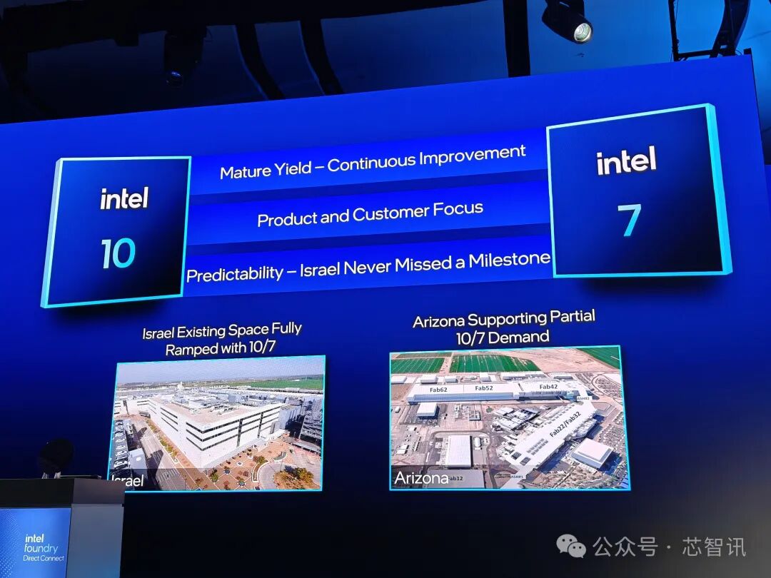 英特尔还宣布,亚利桑那州晶圆厂也将会支持部分Intel 10和Intel 7产能需求,同时其以色列晶圆厂也将会扩建Intel 10和Intel 7产能。