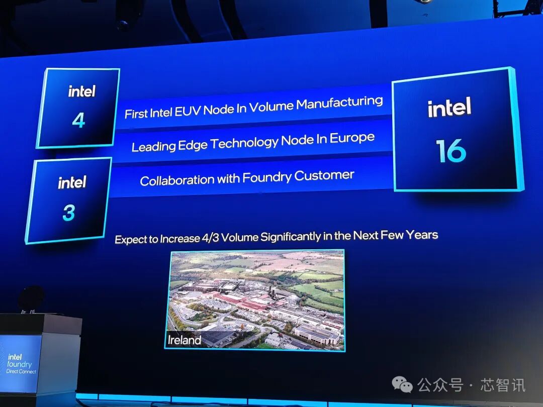 英特尔还宣布将在其爱尔兰晶圆厂的首个EUV制程已经进入批量生产,这也是首个领先的尖端制程在欧洲量产,未来爱尔兰晶圆厂的Intel 4、Intel 3制程产能将会显著增加,Intel 16制程也将会在爱尔兰晶圆厂量产。