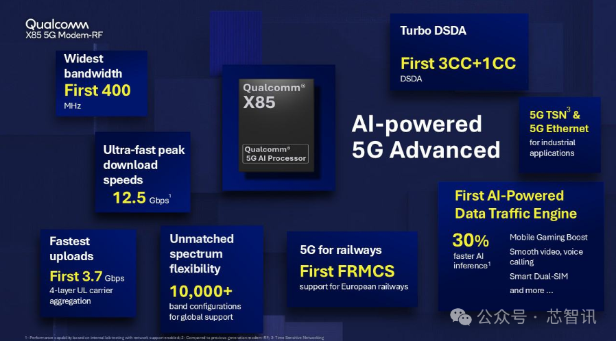 高通强调,凭借最新的X85调制解调器-射频系统,依然是业内唯一一家能够提供全集成并经过验证的、从调制解调器到天线解决方案的企业,包括基带、收发器、射频前端等,推动5G技术商用迈向5G Advanced的新时代。