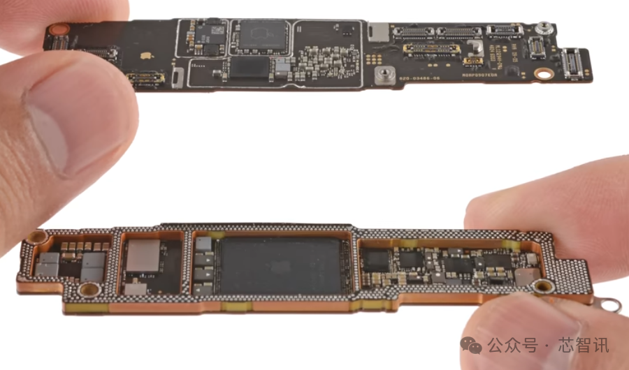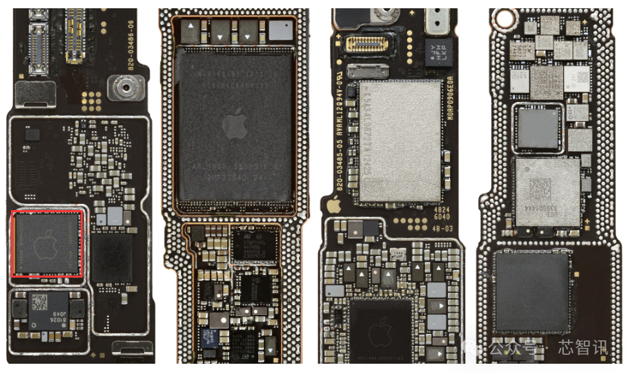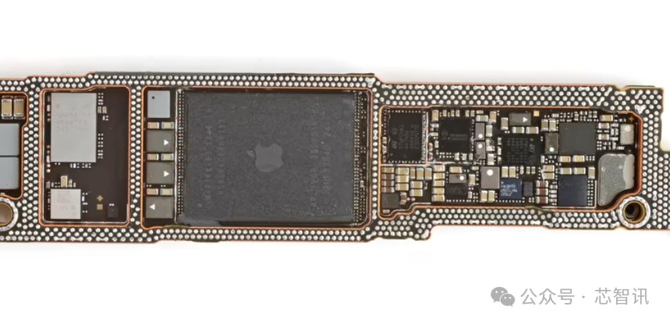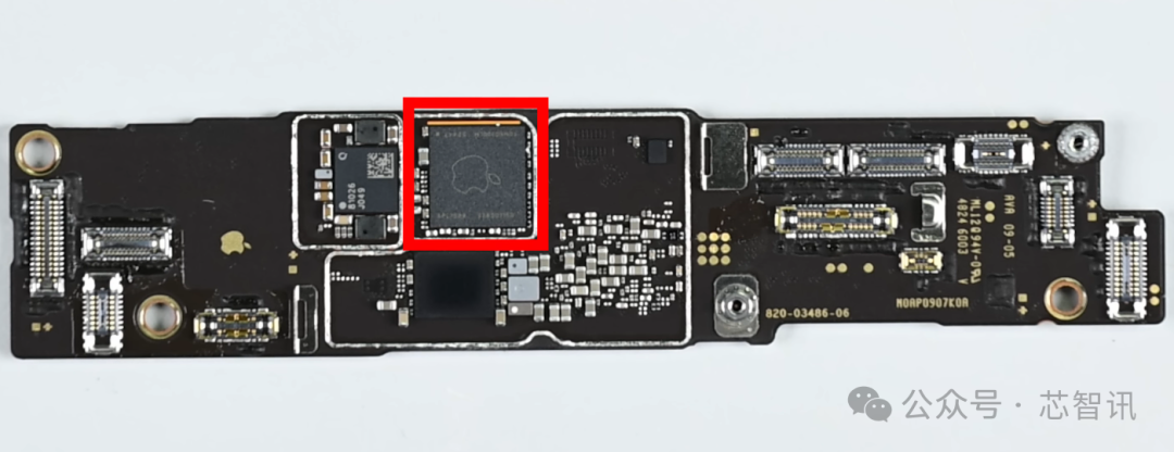 △iPhone 16e主板,红色方框内为苹果C1芯片