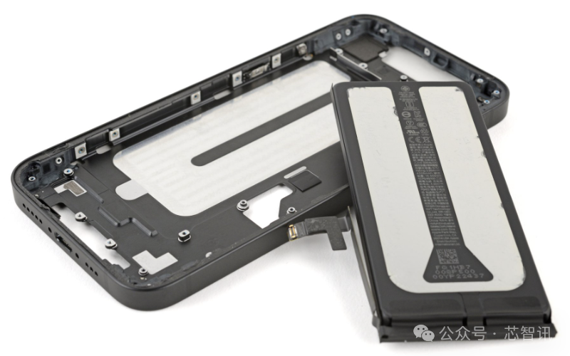 iFixit拆解还显示,iPhone 16e的电池比iPhone 16更大,为15.55Wh。