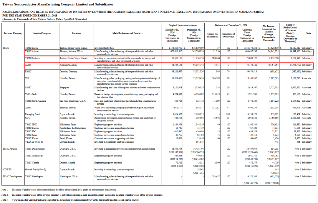 至于台积电日本熊本晶圆厂(JASM),首座特殊晶圆厂已于2024年底开始量产,良率表现优异;第二座晶圆厂建设已启动,近期已经决定将其技术从6nm升级为3nm制程。2025年度,台积电对JASM累计投资达683.84亿新台币(约合21.79亿美元),但是亏损额达97.67亿新台币(约合3.11亿美元)。
