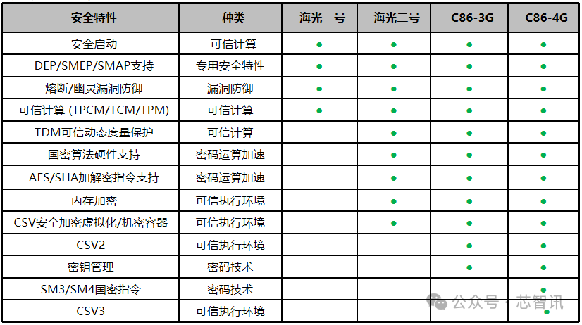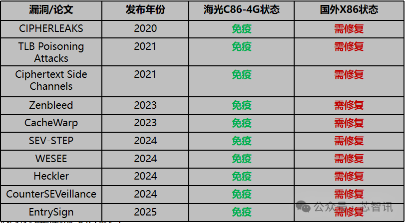 海光C86芯片通过不断自主拓展安全指令、完善产品设计,针对上述漏洞形成完善的主动防御机制和原生免疫能力,并且在可信计算、国密算法支持、密码技术等方面构建多维防线,整体安全性达到了国内乃至国际顶尖水平。