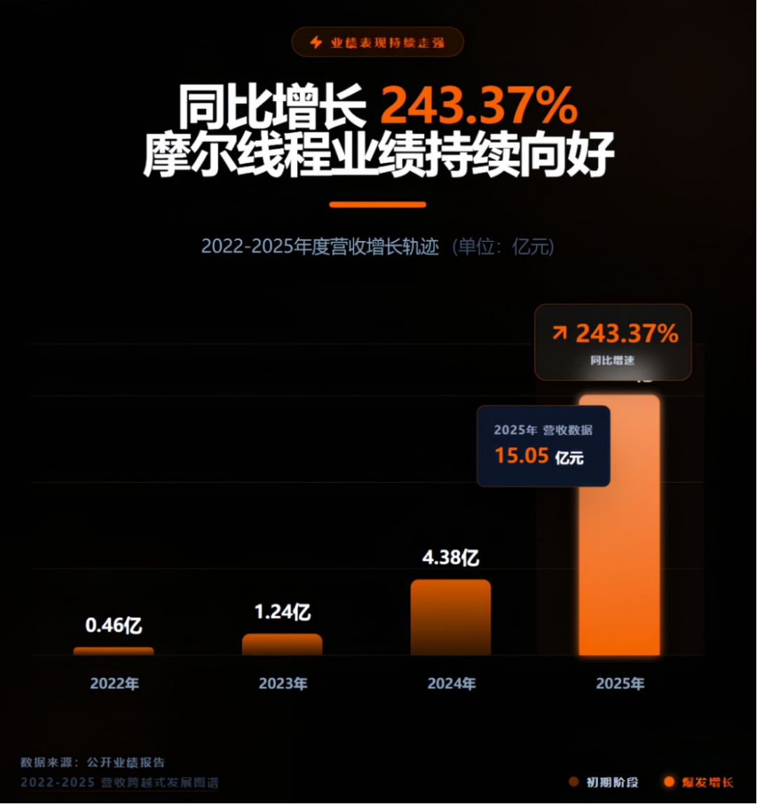 业内人士认为,GPU行业具有行业壁垒高、重研发投入、研发周期长等特征,其发展需跨越芯片设计、软件适配、应用场景落地等诸多考验。在此背景下,企业成长普遍遵循“研发攻坚—营收放量—亏损收窄—盈利兑现”的发展路径,摩尔线程当前的业绩表现与之高度相似,具体表现为: