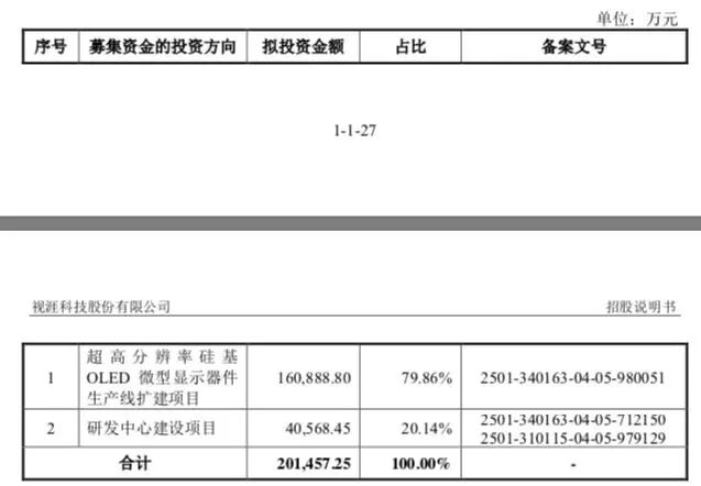 本次IPO,视涯科技拟募资20.15亿元,投入到超高分辨率硅基OLED微型显示器件生产线扩建项目与研发中心建设项目,有助于公司实现产能扩张,优化产品种类,增强技术实力。