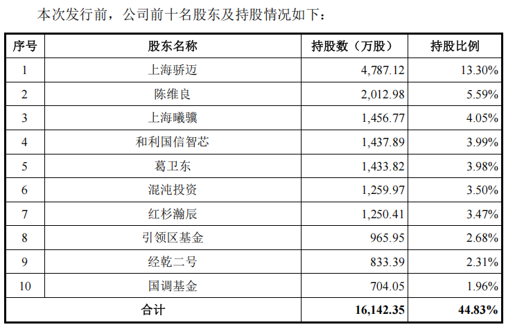 截至本招股说明书签署日,沐曦股份拥有多达124位股东,其中上海骄迈直接持有公司 13.30%的股份,为发行人第一大股东。