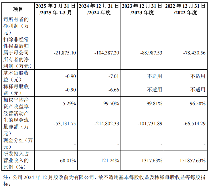 报告期各期,沐曦股份营业收入分别为 42.64 万元、5,302.12 万元、74,307.16 万元和 32,041.53 万元,近13个季度累计营收约11.17亿元;归属于母公司所有者的净利润分别为-77,696.52 万元、-87,115.82 万元、-140,887.94 万元和-23,251.22 万元,尚未实现盈利。累计近13个季度亏损额约32.9亿元。