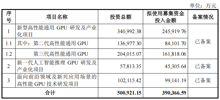 十三、拟募资39亿元,发力高性通用GPU