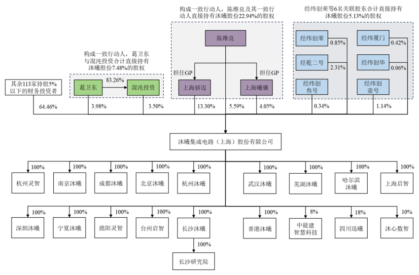 值得一提的是,知名投资人葛卫东直接持有沐曦股份3.98%股权,同时由葛卫东实际控制的混沌投资也直接持有沐曦股份3.50%股权,二者合计持有沐曦股份7.48%的股份。
