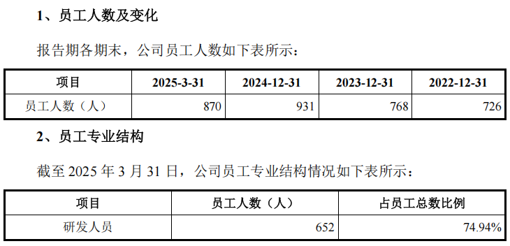 截至 2024 年 12 月 31 日,沐曦股份研发人员合计 706 人,占当年员工总数的比例为 75.83%;截至 2025 年 3 月 31 日,公司研发人员合计 652 人,占当期员工总数的比例为 74.94%。可以看到,最新一期的沐曦股份研发人员数量相比去年年底少了54人,而这似乎也印证了之前沐曦股份裁员的传闻。