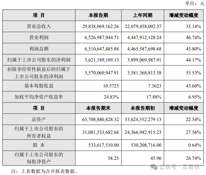 具体来说,2024年度,北方华创实现了营业总收入298.38亿元,同比增长35.14%;归属于上市公司股东的净利润56.21亿元,同比增长44.17%;基本每股收益10.5725元。