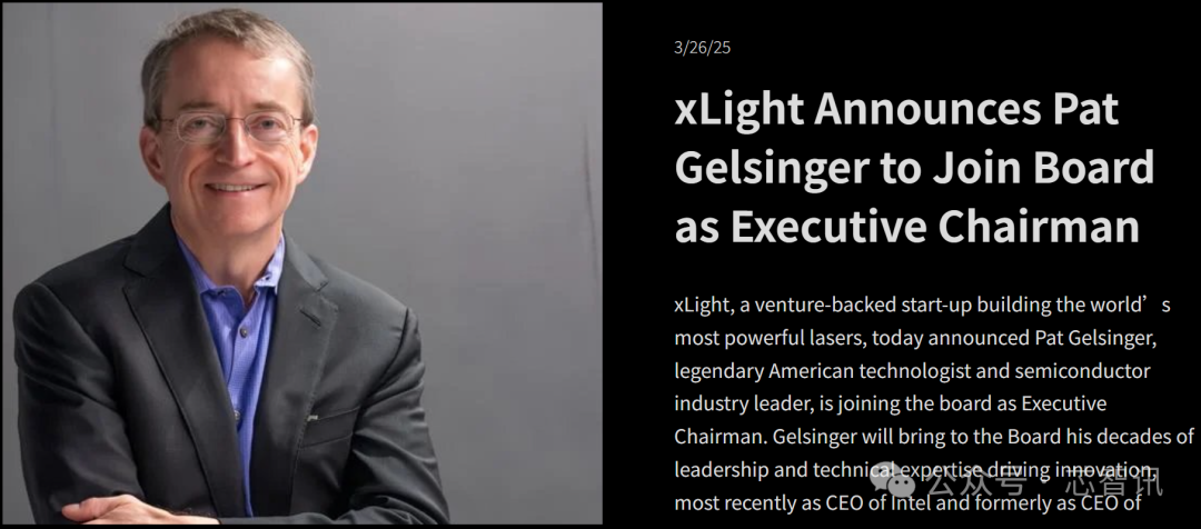4月13日消息,英特尔前CEO帕特·基辛格近日在LinkedIn平台上发布博文称,其已经加入了 xLight 担任执行董事长。xLight官网上个月也公布了这一消息。