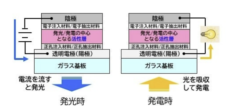 1月26日消息,据日本媒体ITmedia报道称,NHK 科学技术研究所联合京都大学及千叶大学,研发出了全球首个具备发光与太阳能发电双功能的有机OLED显示装置,更成功实现蓝色发光。研究人员预期该技术未来可应用于灾害现场,让显示屏幕在缺乏电源环境下,仍能靠自行发电显示影像。这项突破性研究成果已于1 月20 日,刊登在国际学术期刊《Nature Communications》。