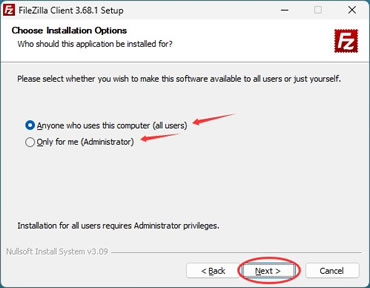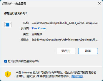 2) 下载 FileZilla_3.68.1_win64-setup.exe 之后,双击启动安装: