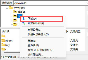 连接成功以后,我们将本地文件拖到上图的红框里,就可以上传到服务器上。在服务器指定文件处右键,选择“下载”,也可以将服务器上的文件下载到本地: