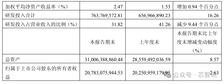 研发投入方面,2025年一季度,海光信息研发投入达7.64亿元,同比增长16.26%,在营收当中的占比为31.82%,同比减少了9.44个百分点。而这主要是由于营业收入增幅较大,使得研发投入占营业收入比例下降。