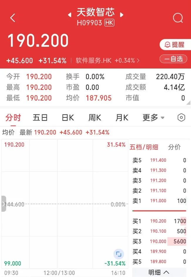 2025年1月8日,国产通用GPU厂商天数智芯正式在港交所主板挂牌交易(股份代号:9903.HK),发行价定为 144.6 港元,募资规模约 37 亿港元。上市首日,天数智芯开盘暴涨31.54%,达到了190.20港元/股,市值突破475.5亿港元。