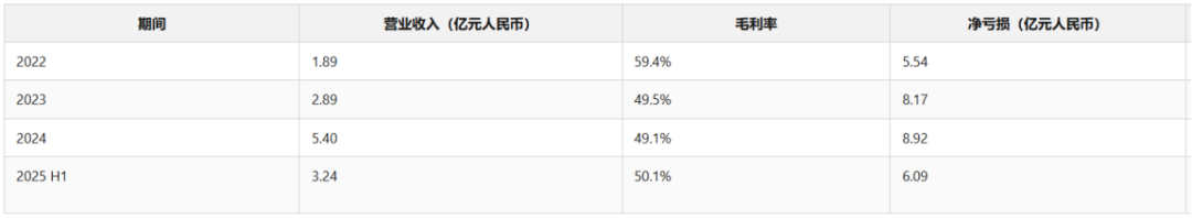 2022—2024年,天数智芯的亏损分别约5.54亿元、8.17亿元、8.92亿元,2025年上半年约6.09亿元。亏损的主要原因还是研发投入:研发费用2022—2024年约4.57亿元、6.16亿元、7.73亿元,2025年上半年约4.51亿元;按上半年口径测算,研发费用约为营收的139.2%。这是一类典型硬科技公司财务组合:产品与毛利“有价值”,但在软件栈、生态与产品迭代的长期投入下,暂时处于未盈利状态。