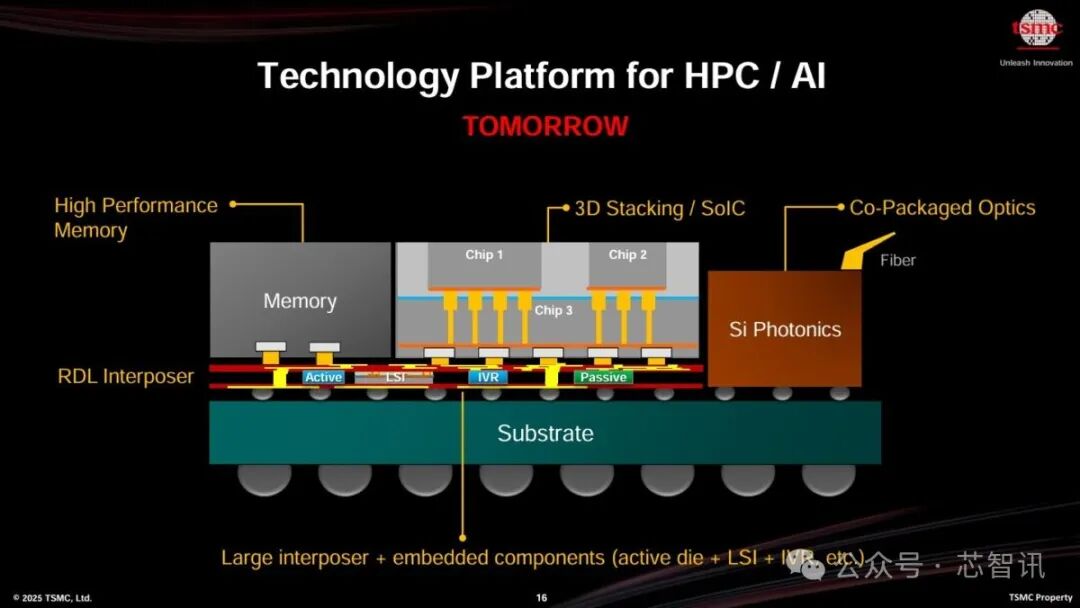 台积电也强调,为完备其逻辑技术的极致运算能力和效率,提供了许多解决方案,其中包含运用了紧凑型通用光子引擎(COUPETM)技术的硅光子整合、用于HBM4的N12和N3逻辑基础裸晶,以及用于AI的新型整合型电压调节器(Integrated Voltage Regulator,IVR),与电路板上的独立电源管理芯片相比,其具备5倍的垂直功率密度传输。