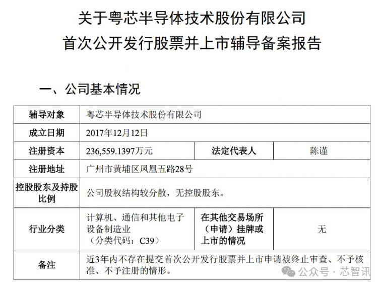 4月25日消息,据证监会网站公告,粤芯半导体已于4月24日向广东证监局提交IPO辅导备案,辅导机构为广发证券。