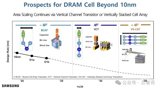 三星电子目前正量产10nm级的第五代DRAM,并以今年量产第六代产品为目标。随着明年开发第七代产品的时程已确定,三星在第八代(1e)DRAM与全新制程技术VCT DRAM之间进行权衡后,最终选择后者这个技术路线。