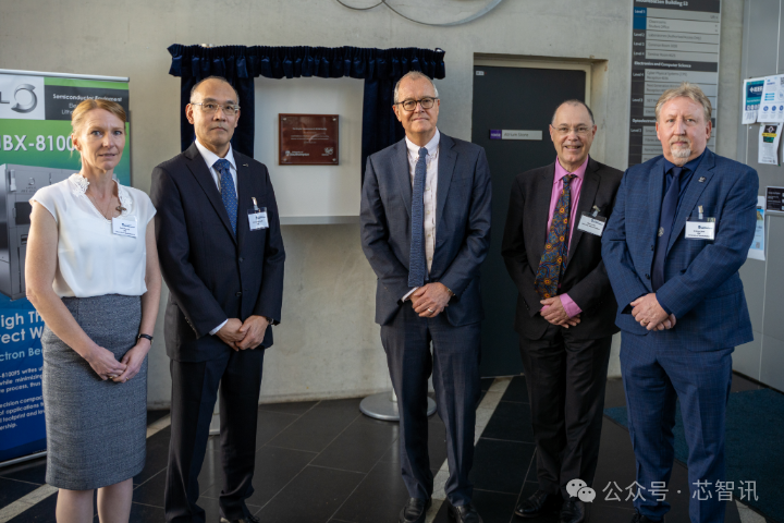 △南安普敦大学科学部长 Lord Vallance 勋爵、南安普敦大学校长 Mark E. Smith 教授、领导光电子研究中心 (ORC) 和 CORNERSTONE 的 Graham Reed 教授、日本Jeol CEO Osamu Wakimoto一起为该新设施揭幕。