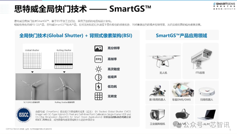 思特威此次推出的面向高端机器视觉的高性能全局快门图像传感器SC533HGS采用了其最新的SmartGST - 2 Plus技术,具备5.1MP分辨率(2592*1944)@60fps帧率,1/2.53”规格,2.2μm像素,支持MIPI/LVDS,具有高分辨率、高快门效率、低噪声、色彩表现佳、近红外灵敏度优异等优势 。