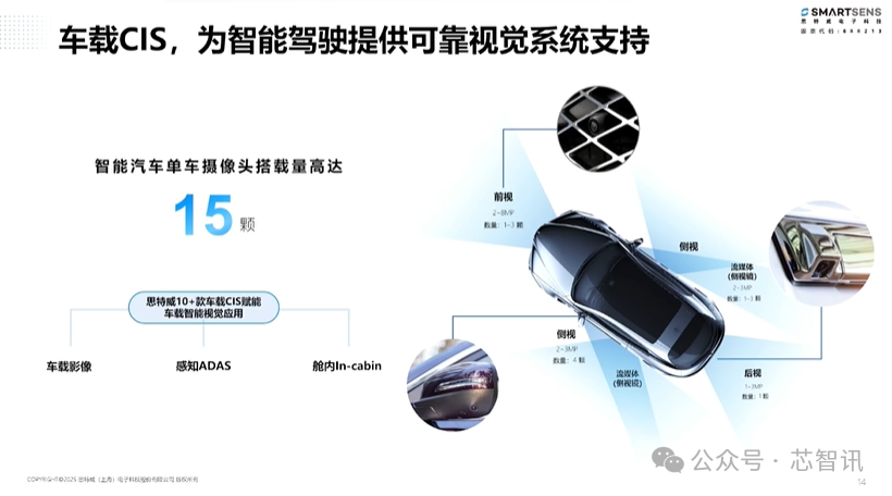 在车载CIS部分,思特威目前已经有15款产品,可以覆盖环视、中视、ADAS应用和舱内应用等。