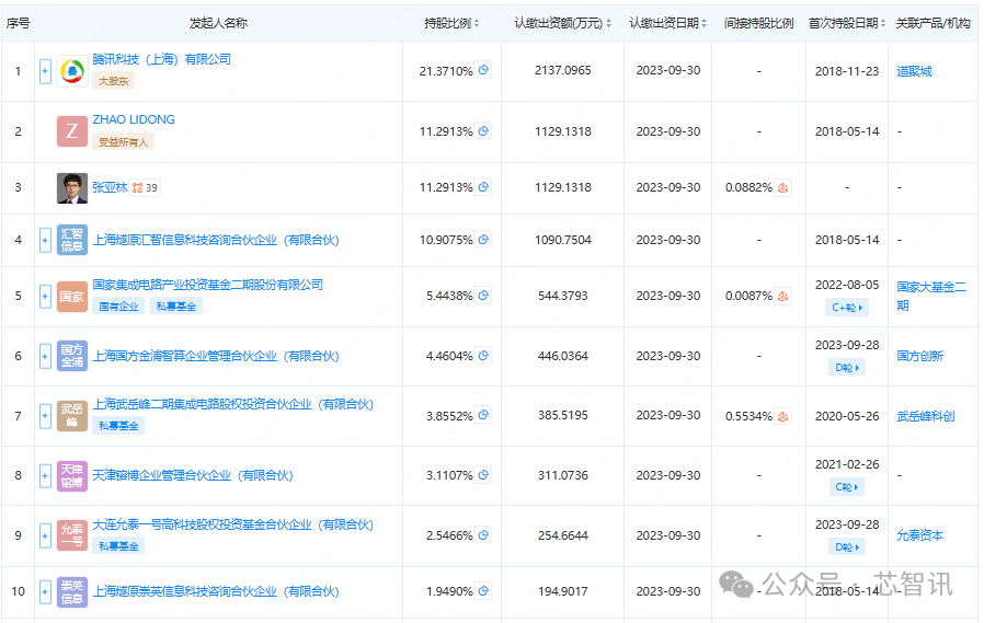 目前,腾讯科技仍是燧原科技第一大股东,持股21.3710%;燧原科技创始人兼CEO赵立东和创始人兼COO张亚林均持股11.2913%。