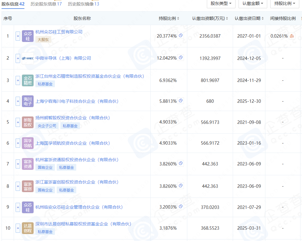 △杭州众硅前十大股东(资料来源:企查查)