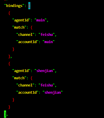 多账号还不够,为了专人专事,上下文解耦,每个账号还要配置单独的agent和单独的workspace。